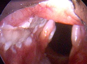 - Патологічна зміна будови слизового шару сприяє приєднанню вторинної інфекції, а це в свою чергу призводить до зміни структури хряща та окістя, що закінчується в більшості випадків стенозом глотки.