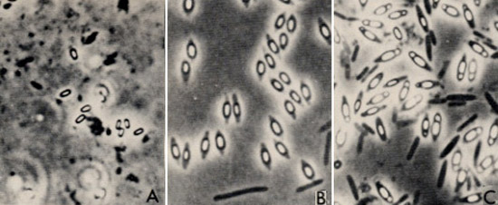 Бактерії в процесі еволюції пристосувалися до виживання в найнесприятливіших умовах навколишнього середовища і зберегли спадкову інформацію шляхом утворення спор. Спори бактерій утворюються всередині клітини. Весь процес проростання (спорообразование) триває 18 20 годин. В ході цього процесу в клітці бактерії змінюється цілий ряд біохімічних процесів. У спорообразном стані бактерії можуть знаходитися тривалий час сотні років. При сприятливих умовах зовнішнього середовища спори проростають. Процес проростання триває 4 5 годин.