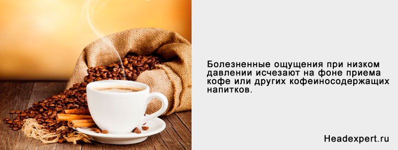 Симптоми можуть бути пов'язані з і гіпертензією. Хворобливі відчуття при низькому тиску зникають на тлі прийому кави або інших напоїв з вмістом кофеїну.