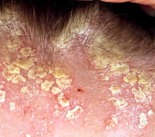 Головна ознака цієї форми хвороби — поява . Клітини шкіри постійно оновлюються. Цикл природного відлущування епідермальних клітин триває в середньому місяць. Але при високій активності грибка, цей цикл скорочується буквально до одного тижня, при цьому відлущені клітини не встигають пройти етап зневоднення.