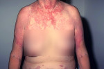 Шкіра на уражених ділянках суха, набрякла, нерідко з видимими папульозний елементами щільної структури, розпливчастими, що зливаються між собою. Висипання поєднуються з ділянками гіперкератозу у вигляді дрібних сірих лусочок, а також з зонами стоншування шкіри, підшкірними вузлами. При розтині ороговілих утворень можуть бути видні розширені гирла фолікулів, а також сальні пробки.