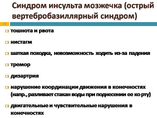 Інсульт мозочка проявляється практично також як і при апоплексії інших частин мозку.